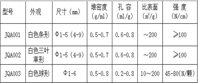 A series of carriers made of pseudo-thin water activated alumina raw powder, the shape, size, pore volume, specific surface and other properties are adjustable.